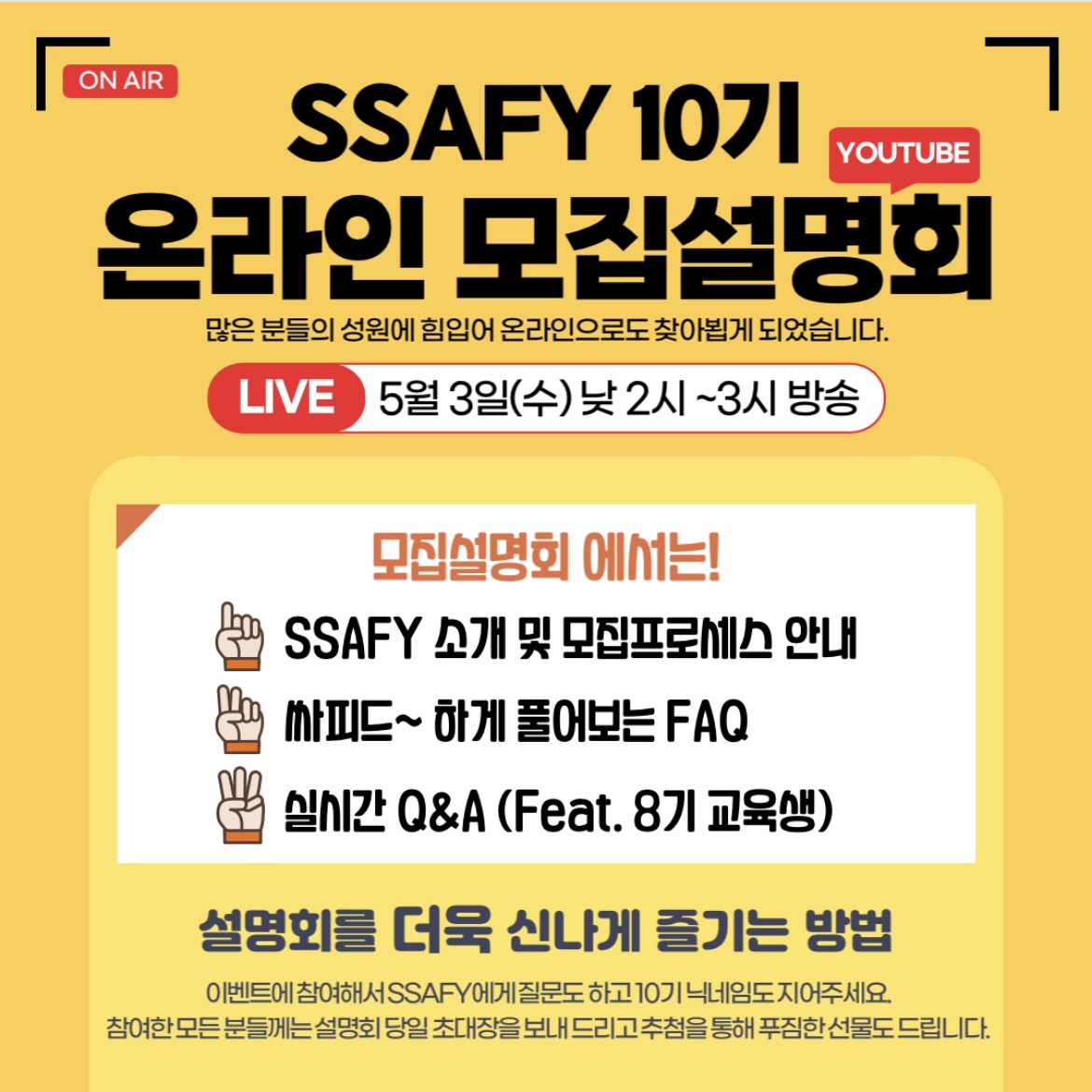 - 지원방법 : SSAFY 홈페이지 온라인 지원